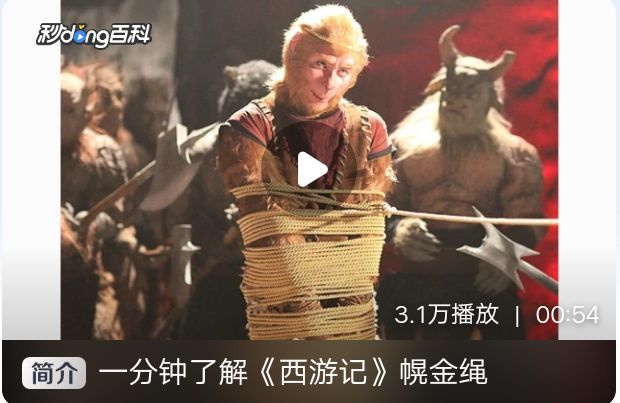 无题故事详情 见《西游记》三十四回。 本是太上老君的一根勒袍的腰带,菩萨为考验唐僧西天取经的决心,找老君借了两个看炉的童子化作妖怪金角大王银角大王在平顶山莲花洞中,还借了五件宝贝:七星宝剑、紫金葫芦、玉净瓶、芭蕉扇、幌金绳,幌金绳被放在压龙山压龙洞的九尾狐狸精那里。二妖斗行者不过,又被行者用计骗了紫金葫芦和玉净瓶,只得找九尾狐狸精求助,派两个小妖过去,行者便敲晕了小妖,骗出狐狸精杀了,夺了幌金绳,自己变成狐狸精的样子来莲花洞中。结果小妖醒来,回来通报,行者便与银角大战,扔出幌金绳来缚银角大王,结果银角大王用了一个松绳咒解了绑,又用紧绳咒抓了行者。后来悟空留下分身自己挫断绳子跑走,又用计胜了金角银角。这时老君赶到,收了二人和五件宝贝走了。 幌金绳 央视版幌金绳