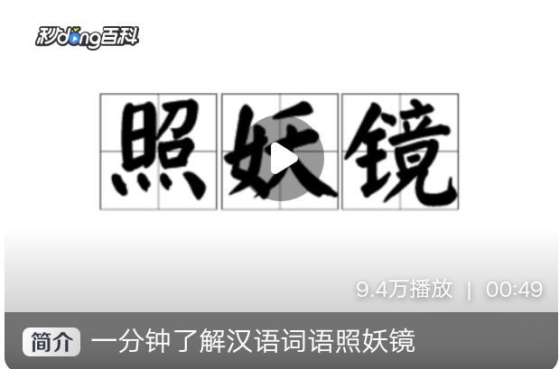 无题百度释义 照妖镜———名词。一面很普通但据说可以透视灵魂的镜子。 照妖镜,古代小说或传说里能照出妖魔鬼怪原形的宝镜,在古代四大名著《红楼梦》、《西游记》中,就有不少对照妖镜描写的笔墨,而且西方神话童话里也有功能接近的魔镜。后来,照妖镜被比作看穿阴谋诡计的事物。 使用照妖镜是一种风俗。旧时宅居因朝向不吉、两屋大门相对、门对烟囱等,便在门楣间或窗户上方悬挂一面镜子避邪,期待妖魔鬼怪见此镜躲避,住户逢凶化吉。俗称此镜为“照妖镜”。 以前,商人一般信风水和灵学,他们在风水先生指出的“死门”方向,即阴气最重之处的对面,一般要立一个奇妙的宝塔状建筑,其顶焊有八面八方照妖镜,名曰“昭日塔”,此举是为聚集八方阳气镇压阴恶凶灵。只要能镇住邪气,国人是不惜成本的。 2 照妖镜展示 照妖镜并不纯粹存在于想象中,民间的江湖术士竟大胆将它具体化,那就是一面普通的玻璃水银镜子,有意故弄玄虚甚至用一面铜镜来证明自己的法术。
