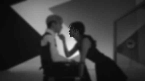 周围的灯光也被摄影师调整的昏黄透出暧昧的气息