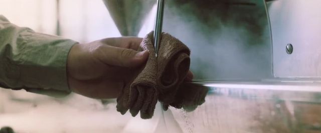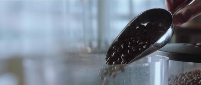 此时他正在磨着咖啡,整个咖啡里都充斥着咖啡豆的香味