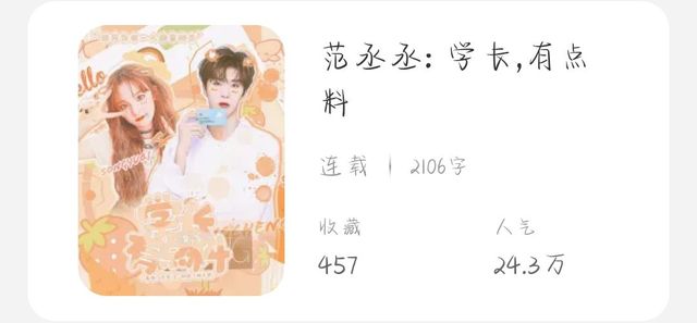 顾寻野:“新书首发,请多多支持!校园篇【本书的上篇】请关注《范丞丞:学长有点料》,两本书有必然的关联,部分剧情需看上篇才能明白。”