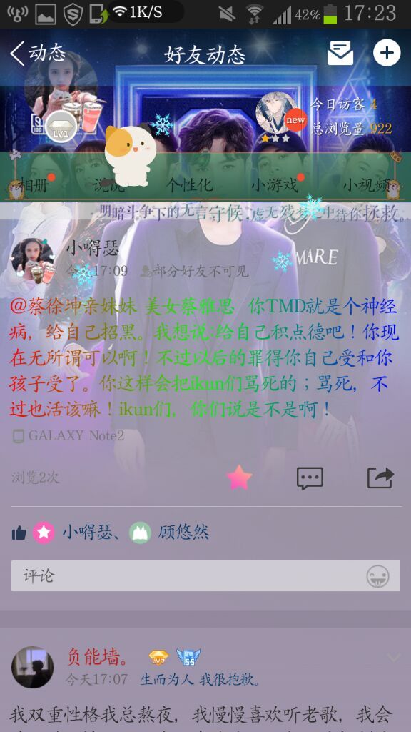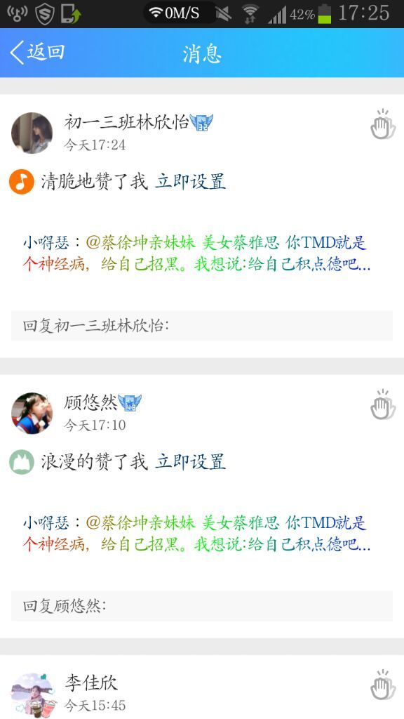吴璇韵不过我在QQ空间上骂她了,直接艾特她
