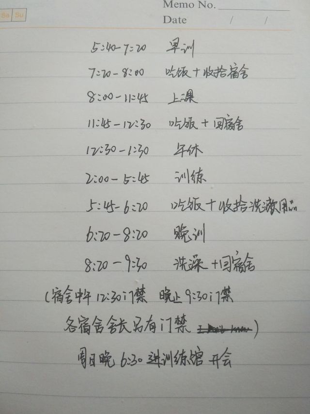 注:体校也是上课的,周一到周五早上训练,上午上课,下午训练,晚上训练,周六早上晚上不练,上午下午训练,下午训练完发手机,周日休息,周日晚上开(周)会,收手机