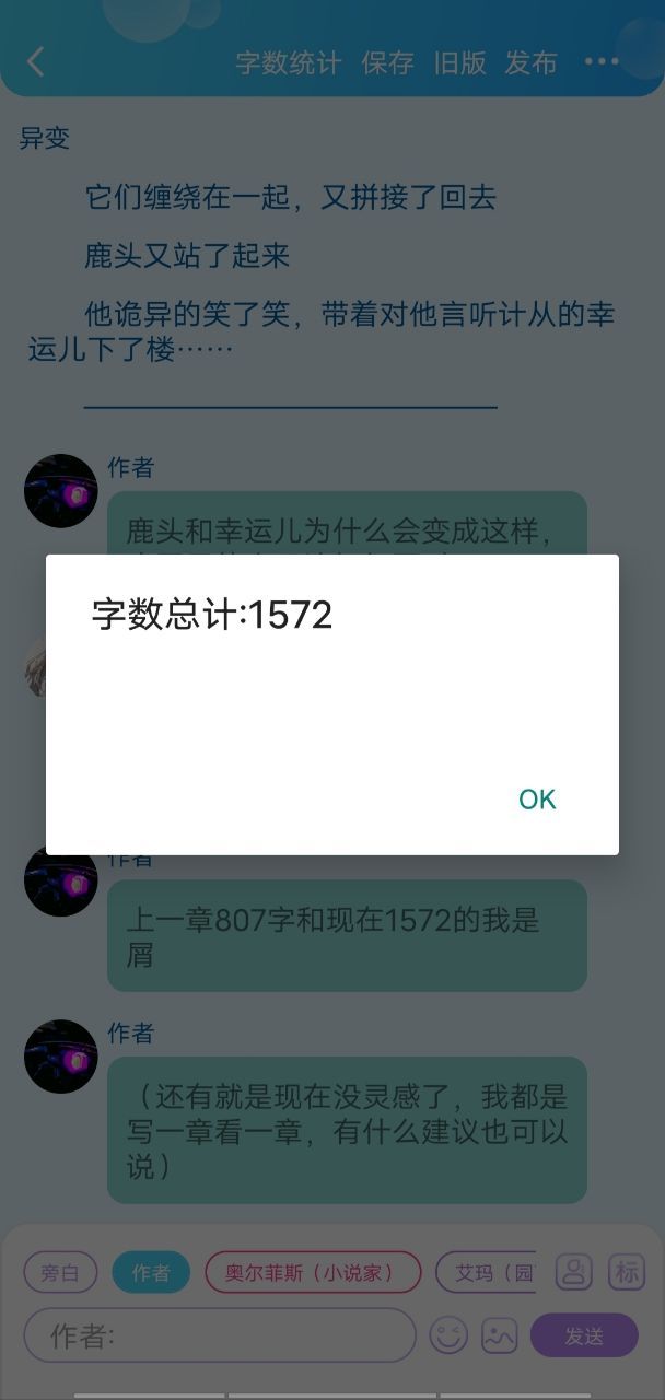 作者上一章807字和现在1572的我是屑