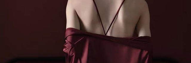 等待头发变干的间隙,沈晏初从衣柜里找出一件焦糖红的吊带睡裙换上。