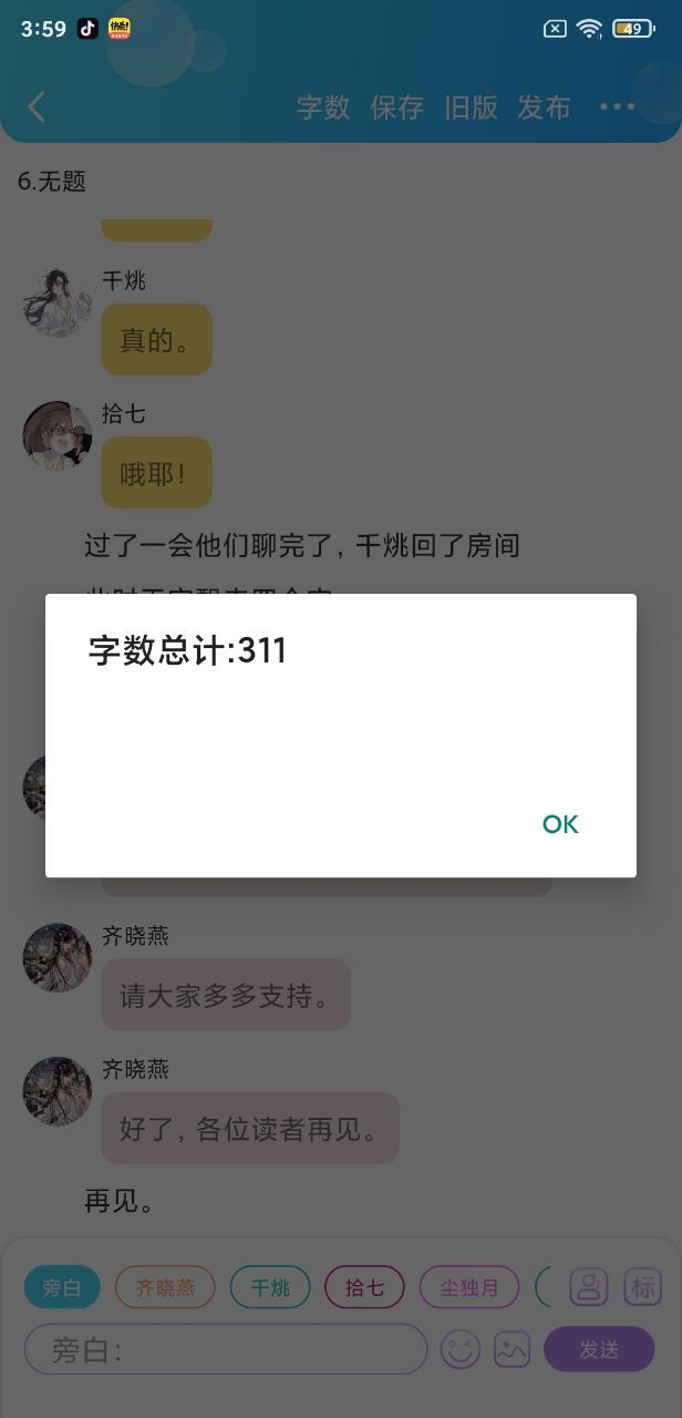 齐晓燕各位,我打算开个新坑,名字叫明月烑烑聊天群。