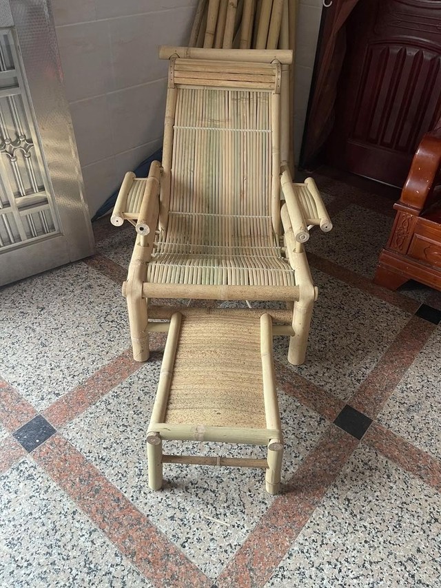 龙套3你看这个,这个底下是可以抽出来的,躺在上面要是觉得脚累就可以也架起来休息,平时不用呢,就可以收起来就是一把普通的竹椅子。