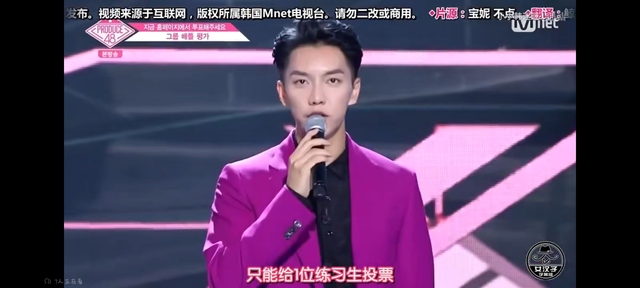 李昇基:没错,就是由来到这里的国民制作人的现场投票和网上投票统计之后来进行,由国民制作人的投票来决定生存和淘汰的,第一场评价就是组合对决评价