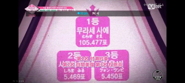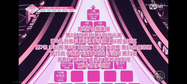 宝拉:金珉周练习生排在了第五名,白間美瑠练习生目前维持排在第一名