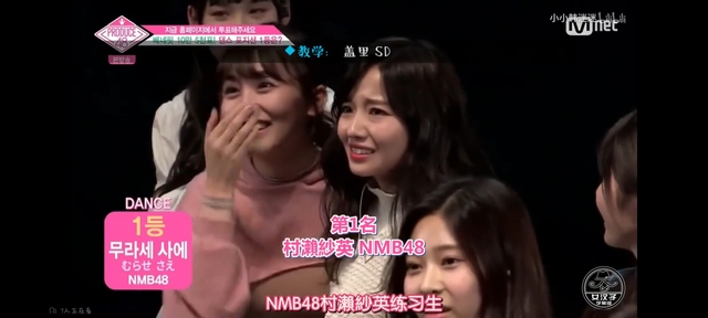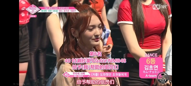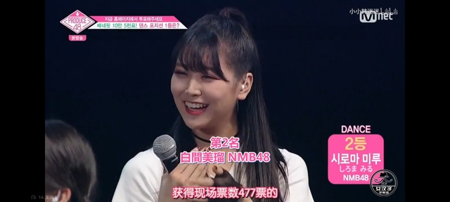 宝拉:Dance位置综合第一名是获得现场票数477票的NMB48 村瀬紗英