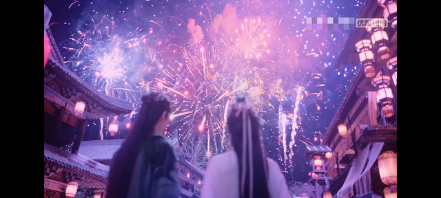接着天空中绽放出烟花,五颜六色,极为漂亮