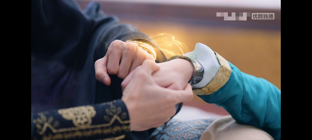 两人戴上镯子后 手镯开始发光 有光从澹台烬手镯里传到叶夕颜手镯里,叶夕颜的脸慢慢恢复血色