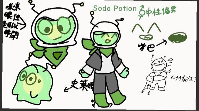 作者__阿余這裡是臨時畫的設定圖,名字其實是英文的,但是我懶得打英文所以就用中文翻譯,蘇打藥水