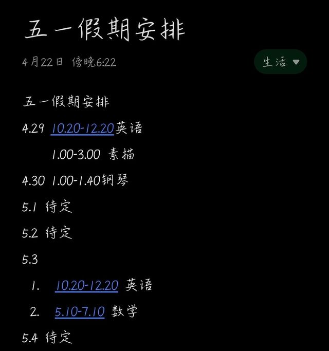 小远还有这些是我的五一放假安排