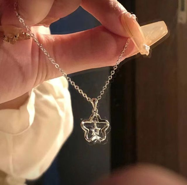 是一串项链,整体以金色为主,是夜空中星星的样式,盒子下面还有一张贺卡,上面用漂亮的钢笔字写着:圣诞快乐