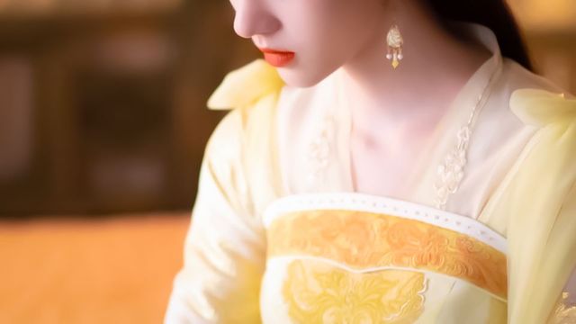 闻灯今日穿着黄色的襦裙,太阳初升,阳光照在了少女裙摆的金线上,显得流光溢彩。