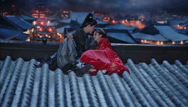 两人刚出忘忧宫,就瞧见对面的一座屋檐上,有两道人影依偎在一起