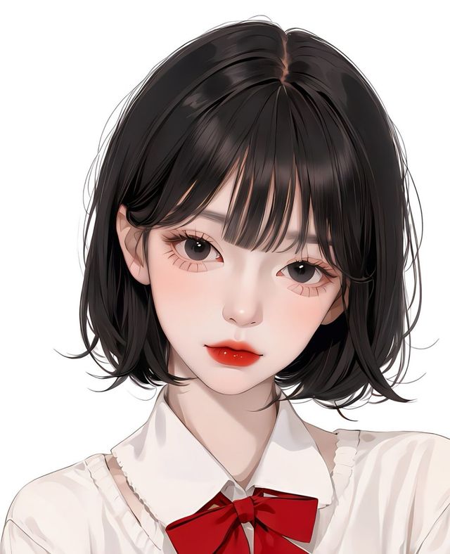 作者妹妹头或短发+学生装。