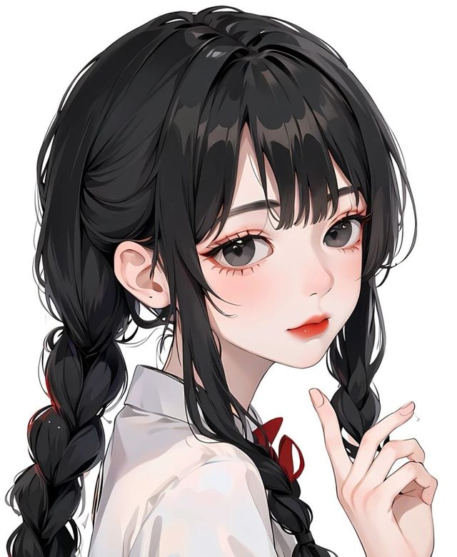 作者可爱双马尾+白色衬衫。