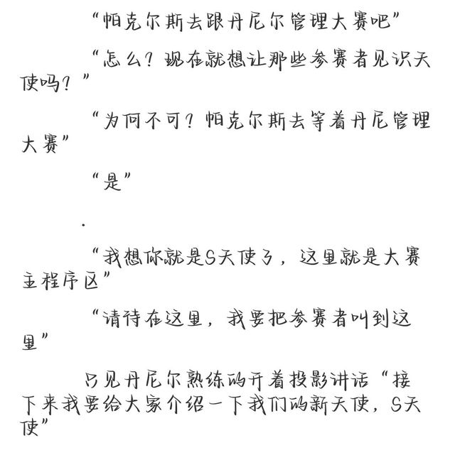接着投影就结束了“S天使,去熟悉一下大赛吧”