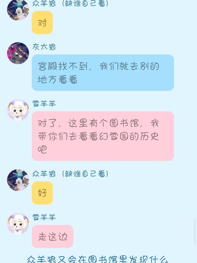 雪羊羊应该在那边的书架,我们去找一下