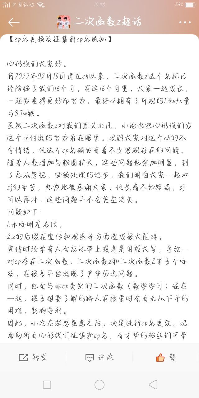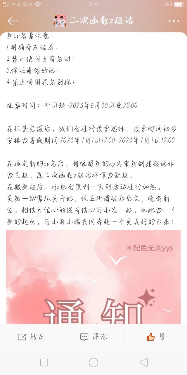 作者1.换超管了,小试走了,变成了小论 2.繁批数据组和网宣组关了缺人,只剩反黑组 2.二次函数z要换名字了,六月三十号要投票 4.好多喜欢小繁的楼姐都说想要下楼了,有些已经动了念头,但还没下