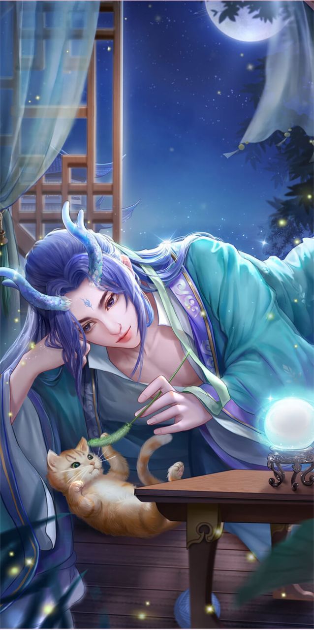 一声轻笑从你耳畔传来,你的两只爪子被依次温柔地拉开。一位月下美人映入你的眼眸之中。