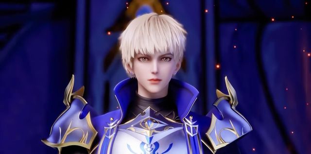 飘逸的金色头发,俊朗的面庞,五官整齐,看上去很有精神,穿着一身擦的发亮的盔甲,背后挂着一把闪着寒光的长剑,整个人有一种威风凛凛的感觉。