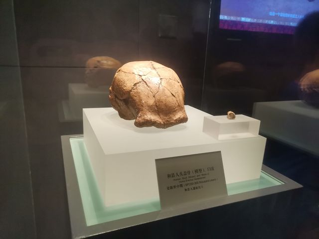 夕涯讲解员说这个头盖骨的主人大概20多岁,是个男的