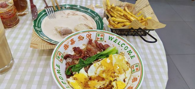 和宝宝一起去吃饭,遥遥说他以后也想开茶餐厅,我支持遥遥,这样我就是老板娘了😊我喜欢吃鸡蛋,遥遥专门点了双蛋叉烧米饭把煎蛋🍳都给我吃,天啦噜这种小幸福都让人头昏脑涨晕晕的😃