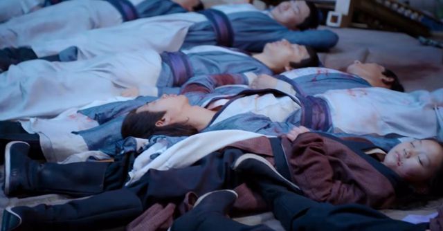 我看到了六师弟还有诸多师兄弟们被随意扔在地上,看到了江叔叔和虞夫人手握着手倒在血泊之中,看到了温晁与那个女人坐在宗主之位上讥笑嘲讽。