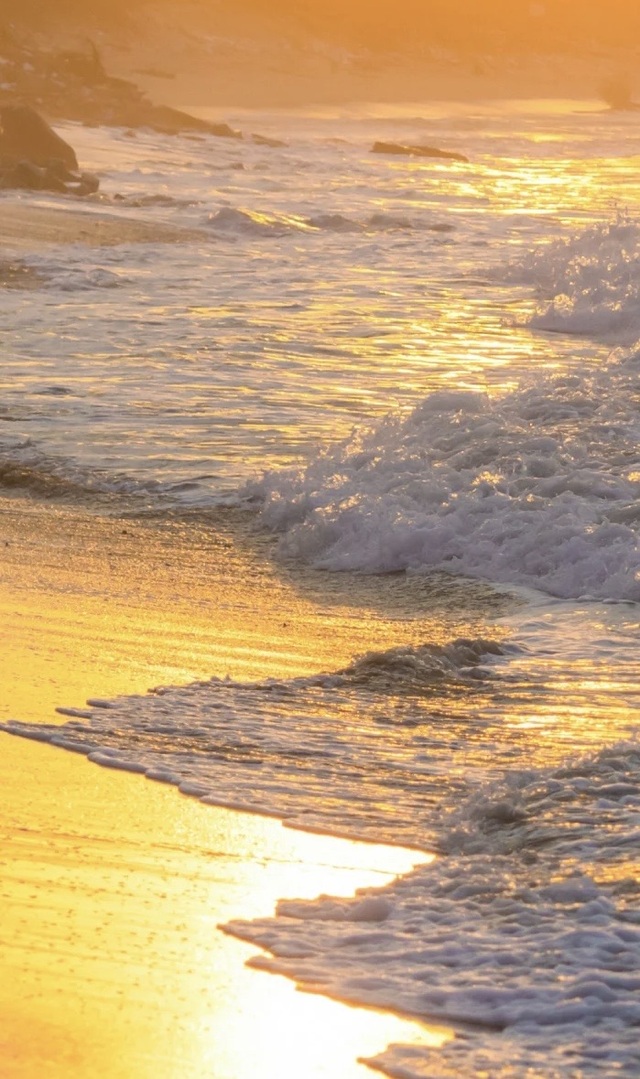 海浪一阵又一阵,不停的拍打着沙滩,我怕鞋子被打湿便将它拿在手里,赤脚走在沙滩上,用上来的海水打湿了我的脚背