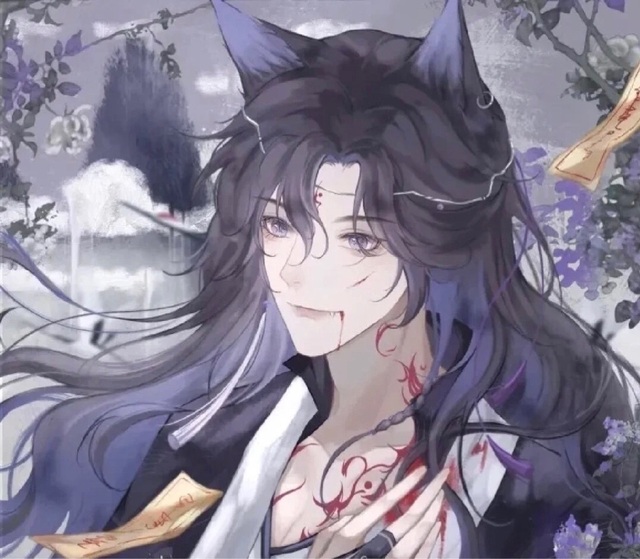这个男人长着一双狐狸耳朵,一身古装打扮,长长的头发飘落在身上,敞开的胸口上有一些红色的纹身,但这些并不妨碍他的颜值