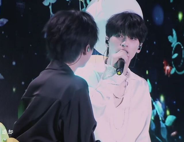 贺峻霖在舞台上肆意散发魅力,严浩翔在身后为他保驾护航