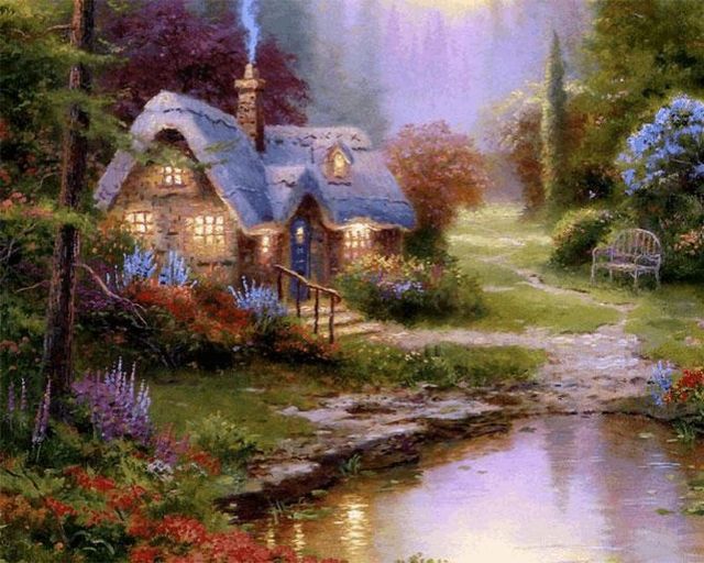 我和基拉度坐在画中的湖边,我拿着狗尾巴草在湖水上画圈圈。