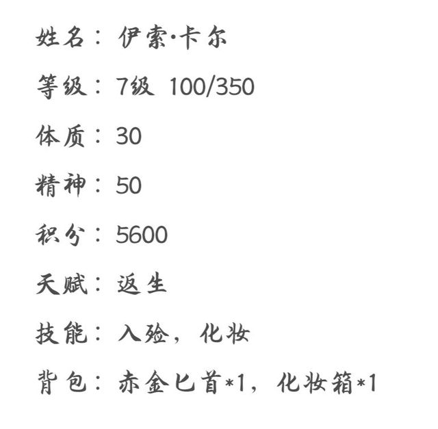 作者这些是现在出现的角色的面板,后面的角色出后再放,大家也可以帮我想想其他角色的天赋和技能。