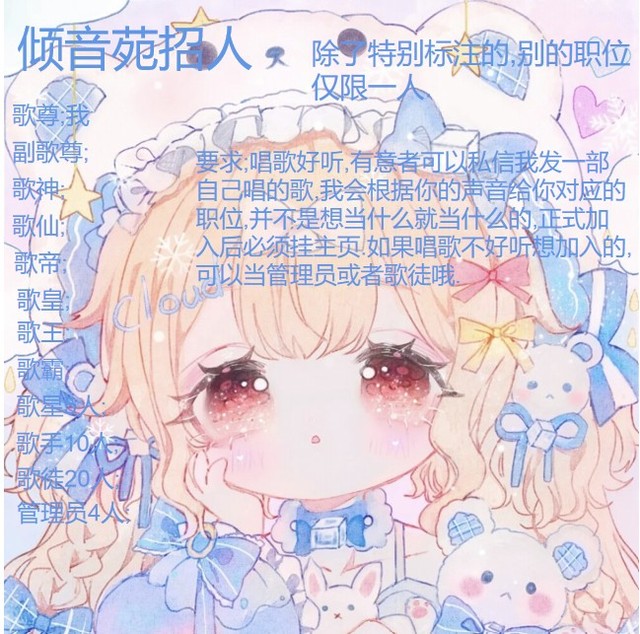 唤汐定制有人不知道什么是文社广告,那么今天我就来解释一下,先给你们看看作者自己制作的组织广告~这是作者自己在全民K歌创建的一个组织,当然你也可以挂别的组织或文社,改成别的职位和要求。再给你们看一个例子:这个就属于文社了,好了,你是否听懂了呢?还有什么不明白的评论区见~白白~