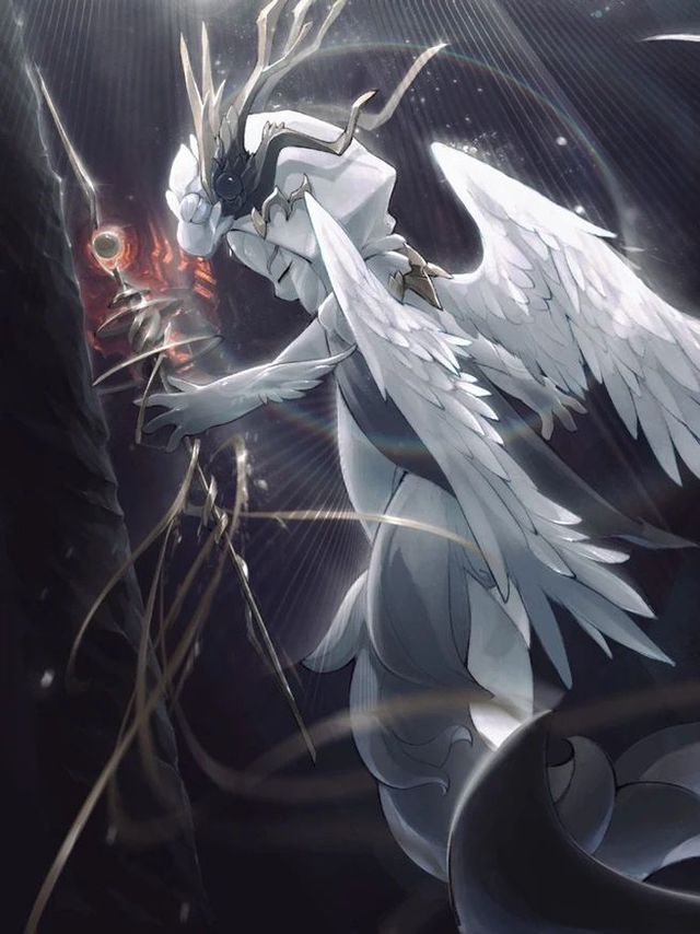 林中一只兽悠闲的走来,身似狮,面似羊,头有双角,身披鳞片,通体雪白。