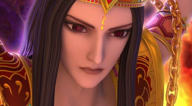 墨色长发在火焰中飘扬,宛如一缕飘荡的烟雾,在火苗的映衬下更添了一份神秘而迷人的美感。