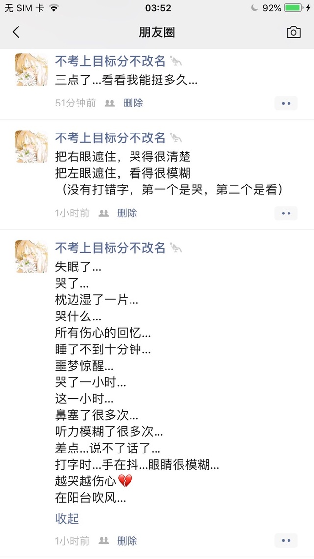 洛柠·音桐失眠了… 哭了… 枕边湿了一片… 哭什么… 所有伤心的回忆… 睡了不到十分钟… 噩梦惊醒… 哭了一小时… 这一小时… 鼻塞了很多次… 听力模糊了很多次… 差点…说不了话了… 打字时…手在抖…眼睛很模糊… 越哭越伤心💔 在阳台吹风…