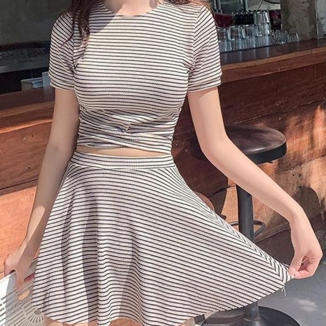 最终你“被迫”换上了条纹分体保守裙式的泳衣,但是该说不说,严浩翔选的还挺好看的,至少你还是挺喜欢的