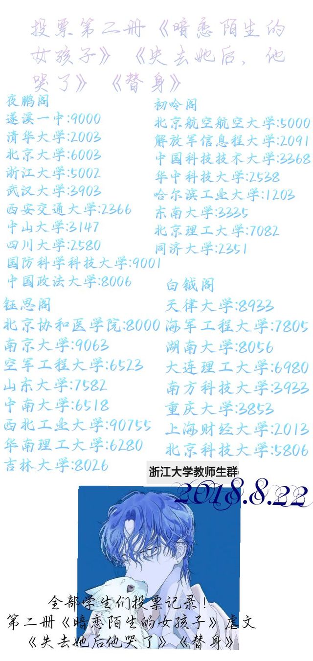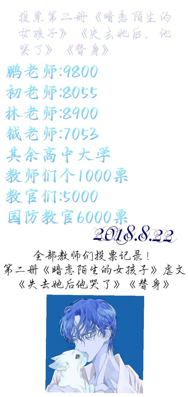 谟言林熠当时,怎么说还以为我们搞什么活动,我就宣布一下就随便投票,我又在忙着给大家分置任务哪里看投票写虐写甜的第二册《暗恋陌生女孩子》的标题呀。