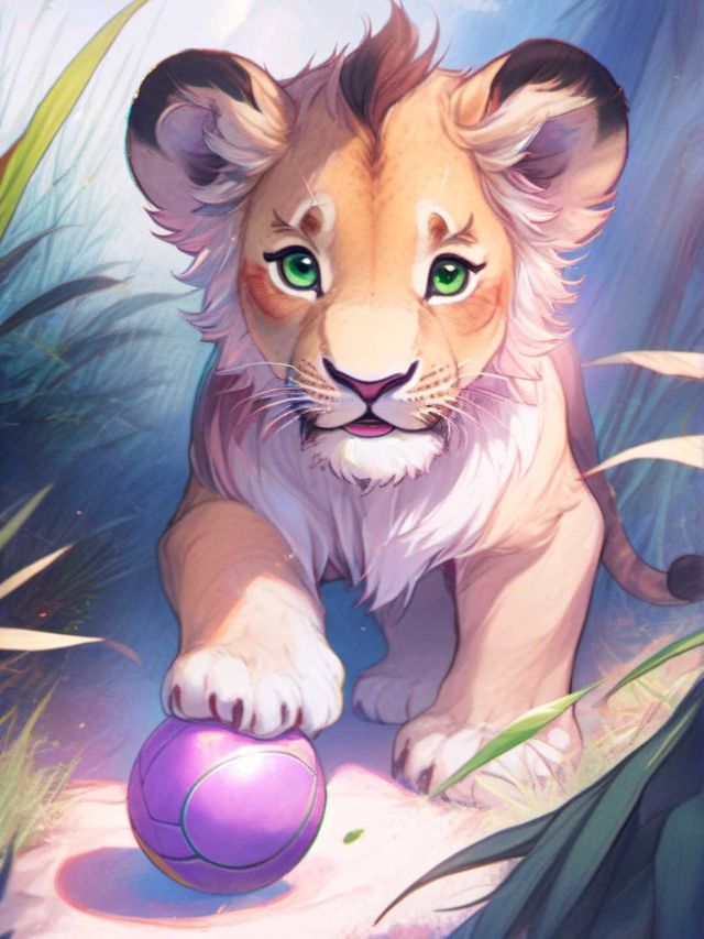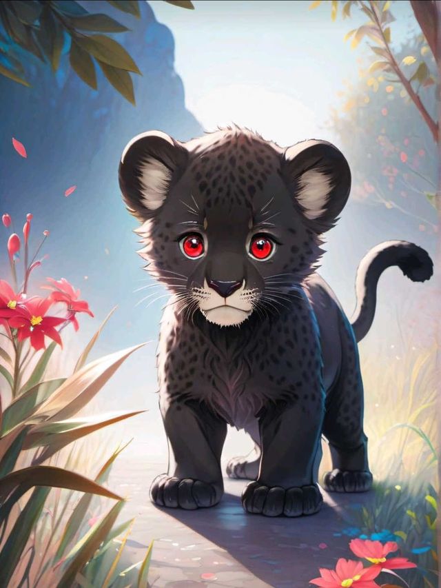 小豹崽还太小,没有断奶,显然,还不太会走路。但是黄昏似乎让小家伙变得兴奋起来了,蹒跚着向对面在玩球的小狮子靠近