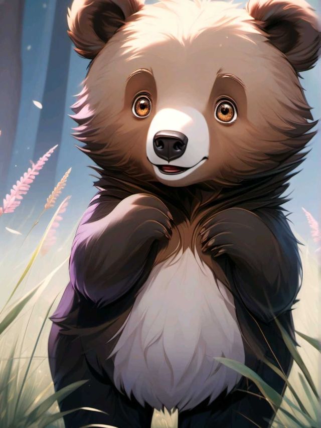 远处,一只憨乎乎的小熊好奇的往这边张望着
