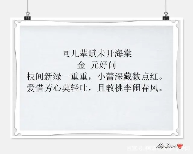 富察贵人写的真好,臣妾喜欢康乃馨:树有不尽之花更雨新好者,三百六十日长是落花时。灼灼百朵红,戋戋五束素。