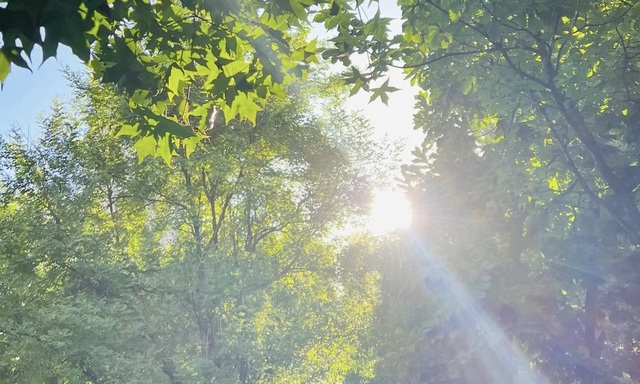 夏日的阳光从密密层层的枝叶间投射进来