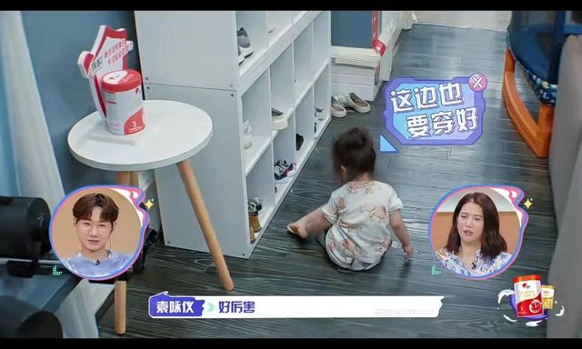 苏妍自己穿鞋子了
