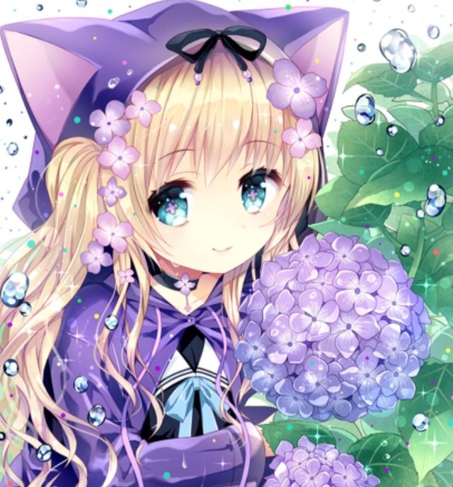 只见一个穿着紫色斗篷(注意,斗篷上有两个猫耳朵)金色头发,青色眼睛的女生从暗处走出来
