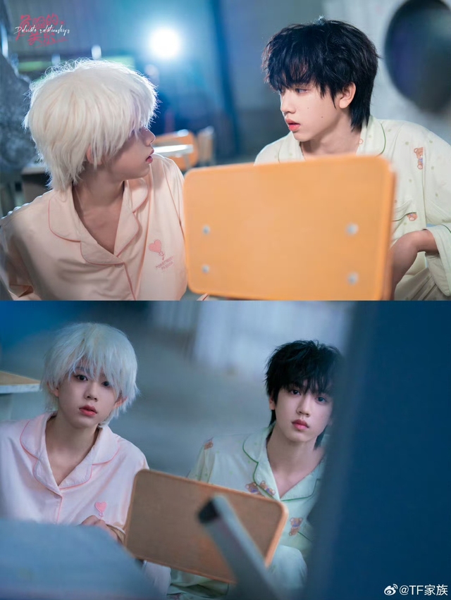 两个人躲在角落