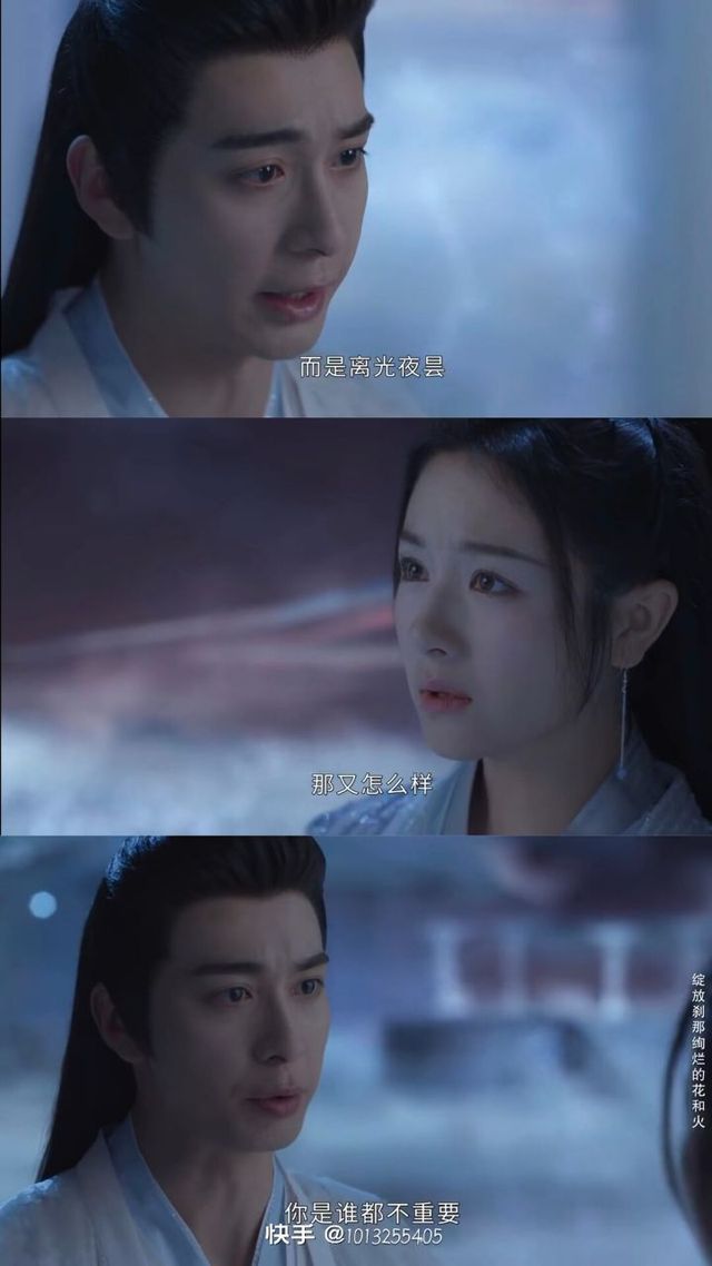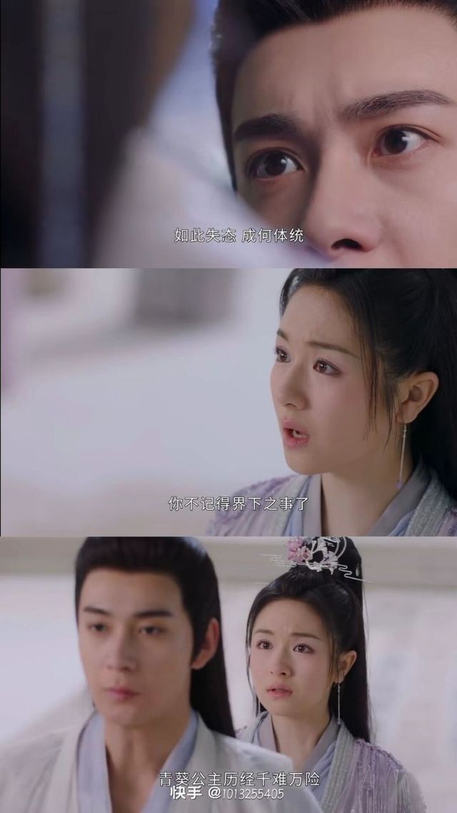 离光夜昙神君,你别开玩笑了,三位神识都是你的欲念所化的,记不记得都由你,也许姐姐说的没错,相思是假,思念也是假,人间的一切,只是你我做的一场梦罢了,我们注定一个在天璀璨、一个在地尘染,你和我一开始就不应该相遇,刚刚在九霄云殿上多谢神君的解围,你刚刚说的话,青葵牢记在心里,青葵会学天妃礼仪,做天妃该做的事,不给神族、各位、神君增添麻烦,做一个合格的天妃(说着说着流下眼泪)